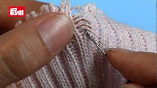 „Ha több szem is felszaladt, mindig a legalsóval kezdj, és fokozatosan haladj felfelé. Így biztos lehetsz abban, hogy minden szem stabilan a helyére kerül.”